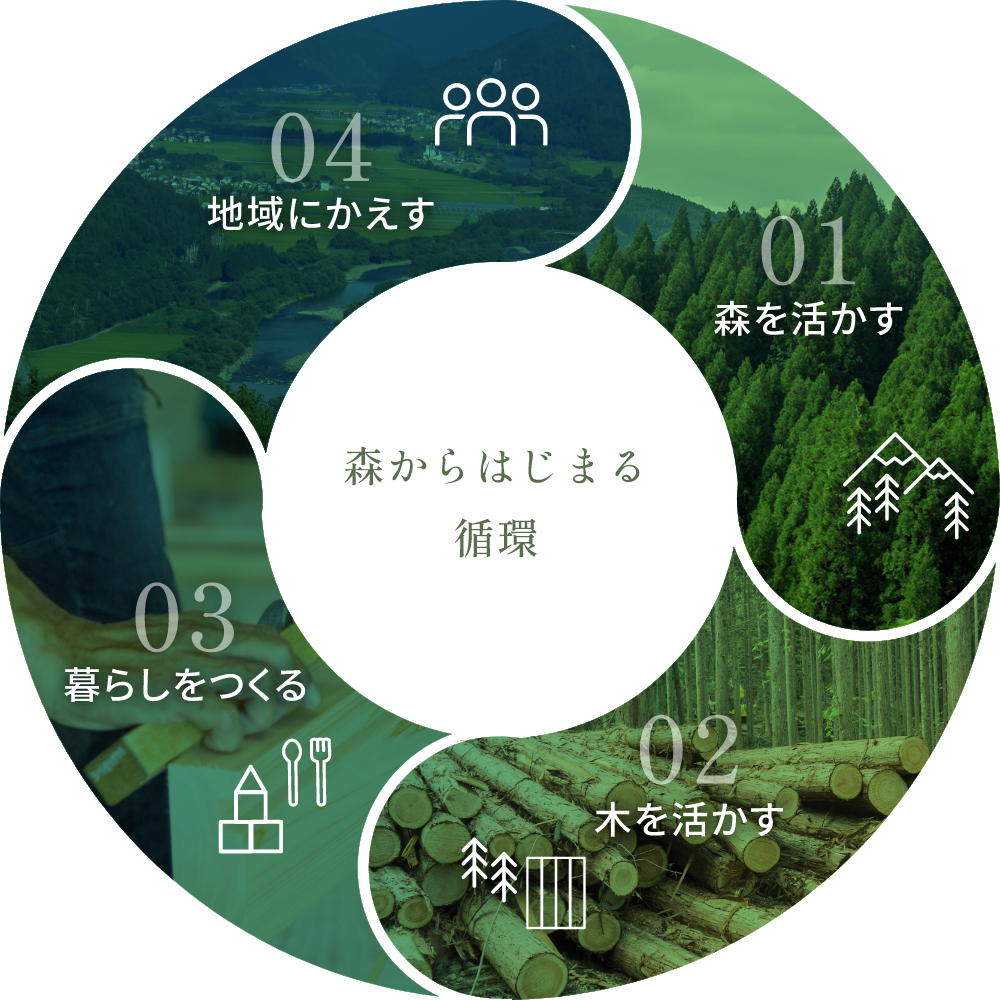 製材や加工に携わる人、建てる人、住まう人——そのすべてが、暮らしの循環の中にいます。