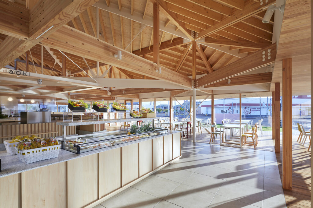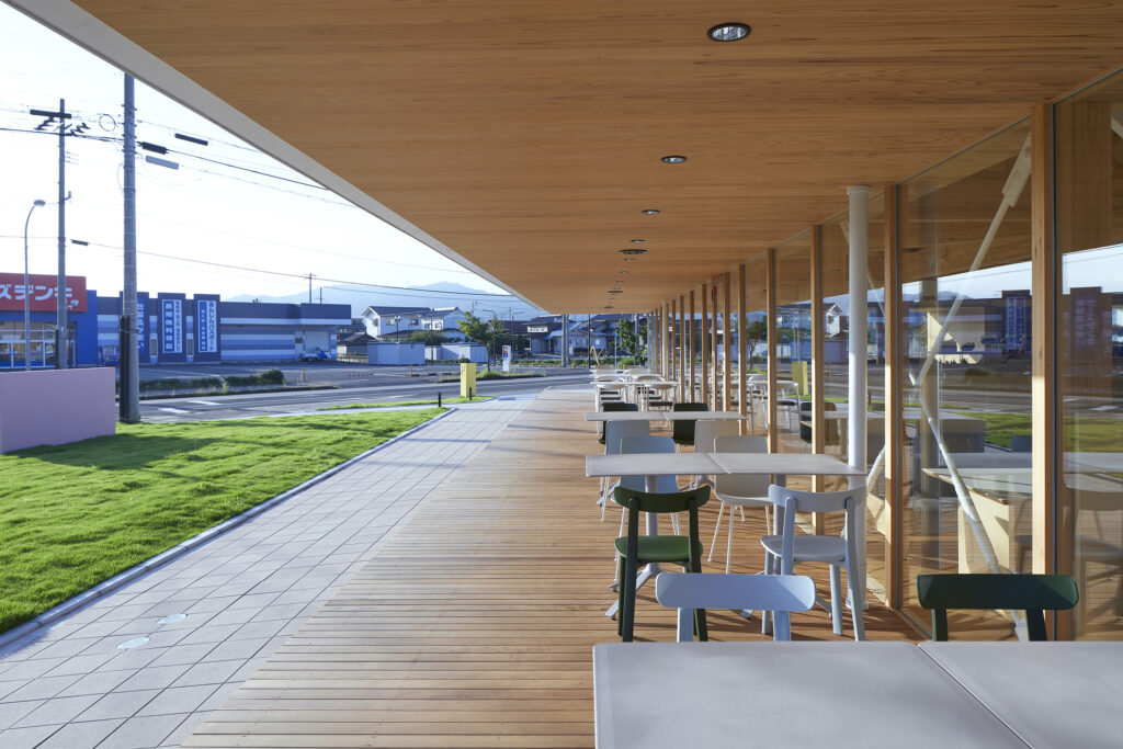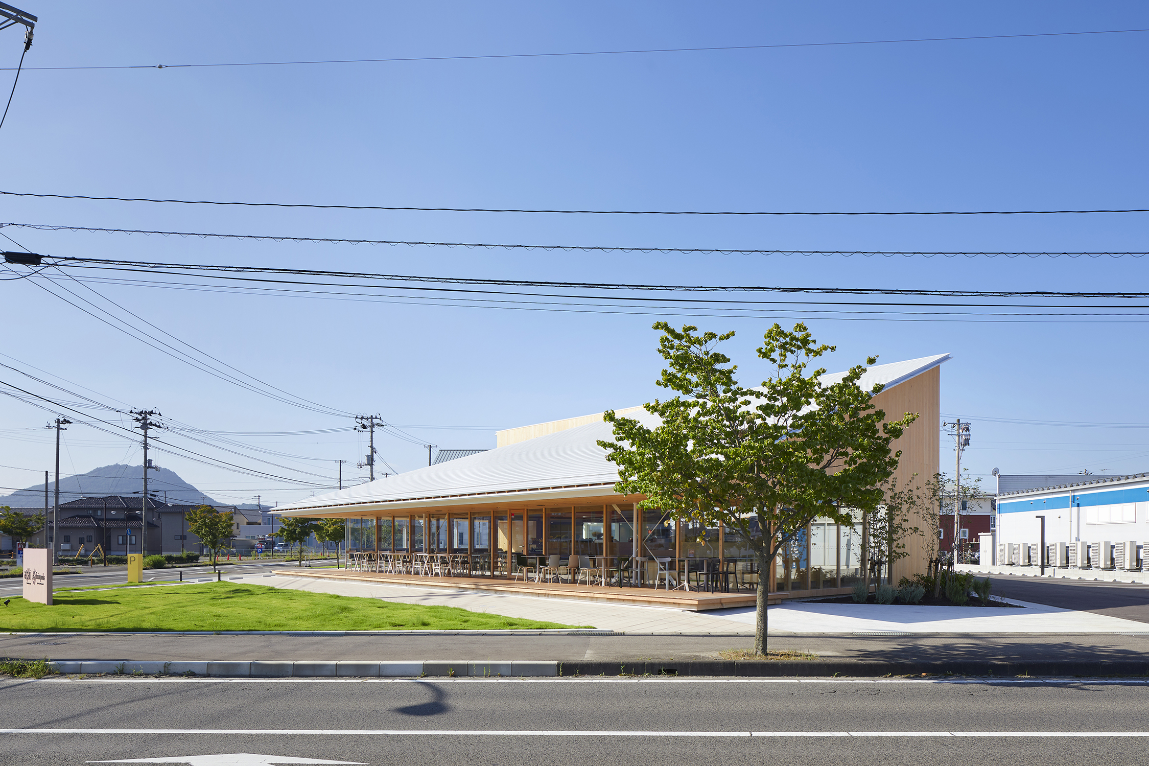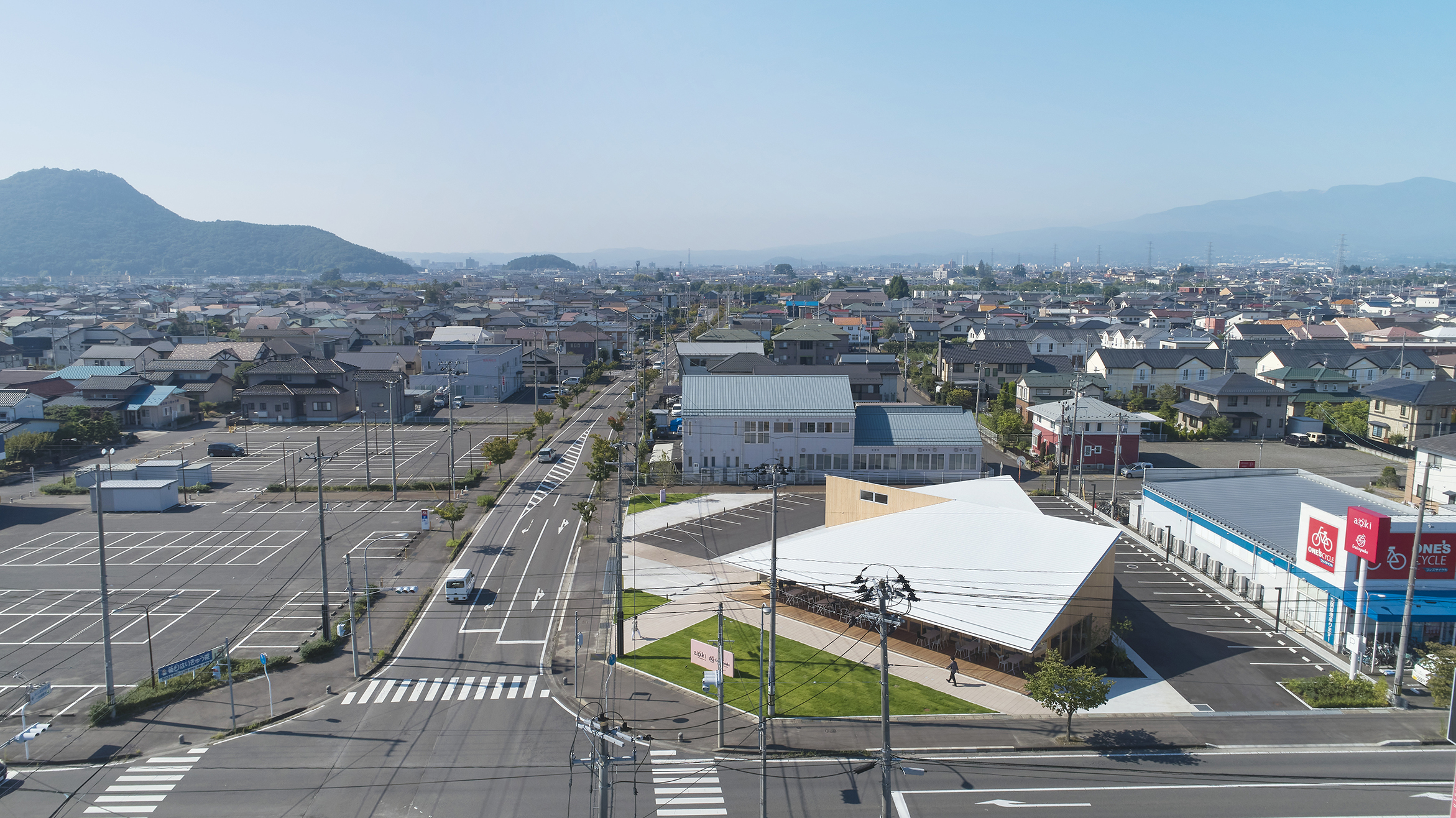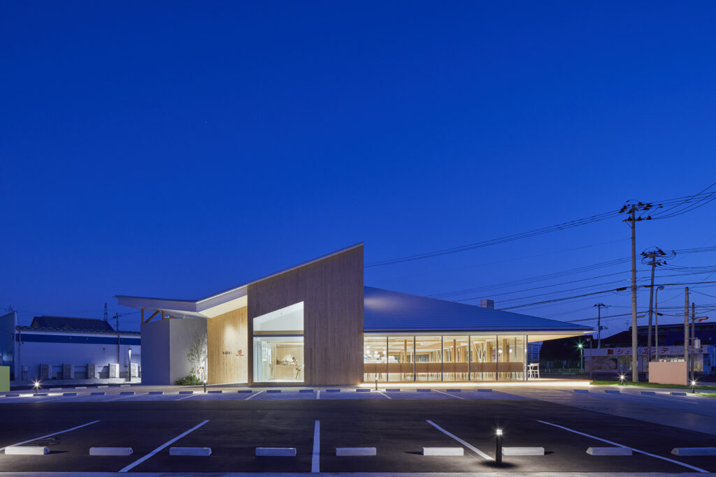 各方向から異なる表情を見せるファサード構成により、地域の風景に新たなアクセントを生み出したロードサイド型店舗。